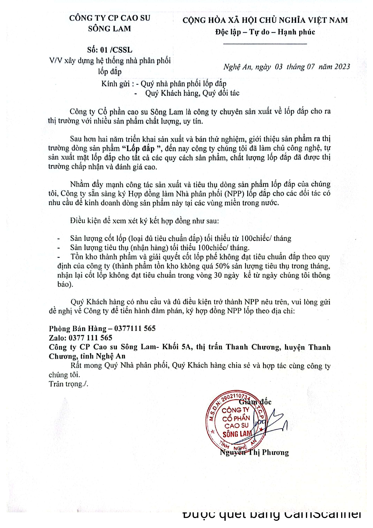 Quý Khách hàng có nhu cầu và đủ điều kiện trở thành NPP nêu trên, vui lòng gửi đề nghị về Công ty để tiến hành đàm phán, ký hợp đồng NPP lốp theo địa chỉ: